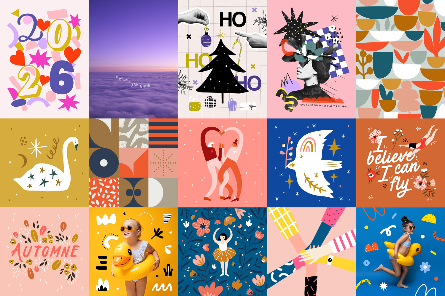 J’aime jouer avec les typographies, les couleurs, les formes graphiques et parfois quelques illustrations pour créer des visuels justes, harmonieux et expressifs.
